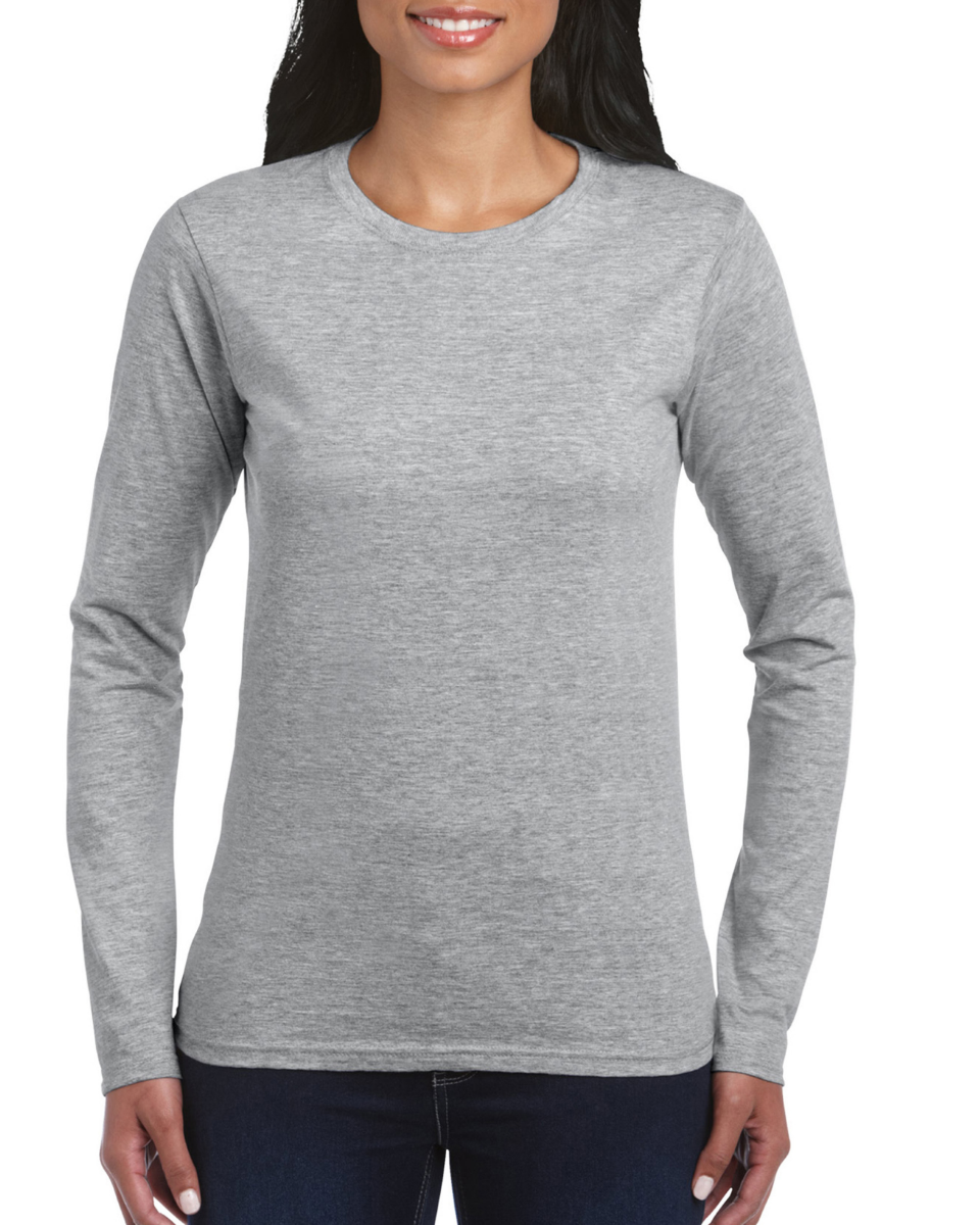 T-shirt met lange mouw voor dames, aansluitend model in jersey-kwaliteit 100% katoen. Verkrijgbaar in rood of lichtgrijs gemeleerd.